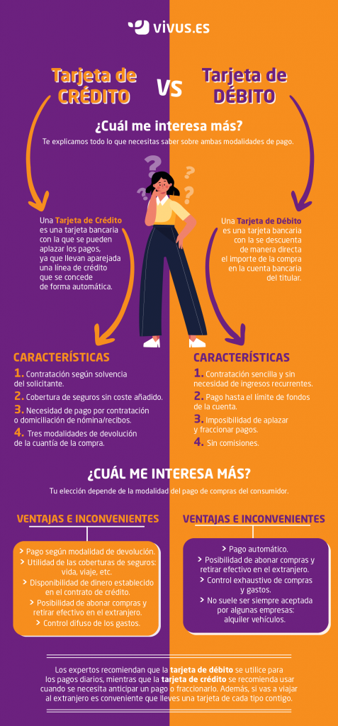 - Forma de pago: Las tarjetas de débito realizan pagos al contado, ya que el dinero se deduce automáticamente de tu cuenta, mientras que las tarjetas de crédito permiten pagos aplazados en cuotas mensuales.