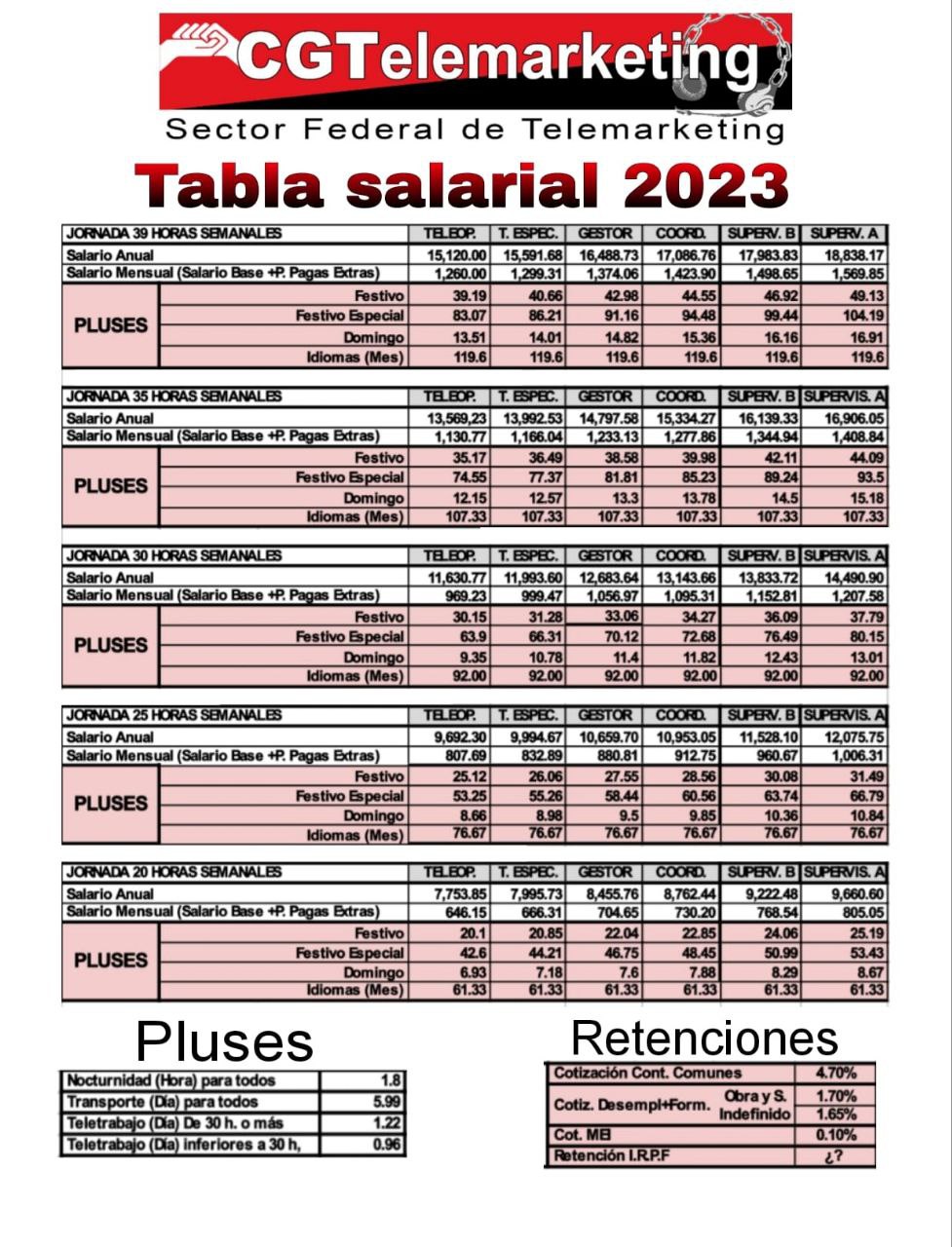 Sueldo teleoperador 30 horas
